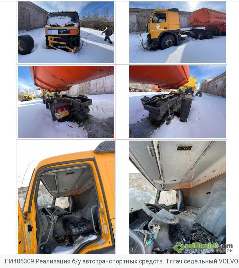 ППродается бывший в употреблении Тягач седельный VOLVO FM Г.в. 2011. Инв № V99991826 Транспортное средство технически неисправно. Двигатель не запускается, течь масла через сальники и уплотнители, требует замены распредвалов и шатунных вкладышей. МККП имеет сильный износ, передачи не включаются, течь масла через сальники. АКБ не исправно, разрушения и осыпания пластин. Шины имеют предельный износ протектора. Топливный бак не герметичен. Электропроводка замкнута, частично отсутствует. Рама имеет сольную коррозию. Редукторы ведущих мостов имеют предельный износ шестерён и валов, течь масла через сальники.