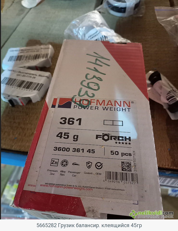 5665282 Грузик балансир. клеящийся 45гр. Название класса: Инвентарь, инструмент, мебель. Инструм.рем,строит,отдел,измер,грузозахв. Инструмент слес-мон,рем,строит,отдел,прч. Спец.инструм.д/ремонта шин и шиномонтажа. Завод: 6101. Склад: 6000. Отправку груза готовы осуществить посредством любой транспортной компании (на усмотрение покупателя), при этом Покупатель самостоятельно взаимодействует с транспортной компанией.