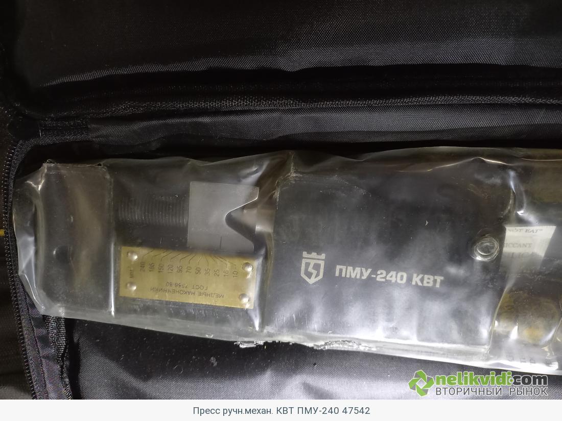 Пресс ручн.механ. КВТ ПМУ-240 47542. Название класса: Инвентарь, инструмент, мебель. Инструм.рем,строит,отдел,измер,грузозахв. Инструмент слес-мон,рем,строит,отдел,прч. Специнструмент электромонтажный прочий. Завод: 6108. Склад: 5200. Самовывоз из г. Удачный, РС (Я)