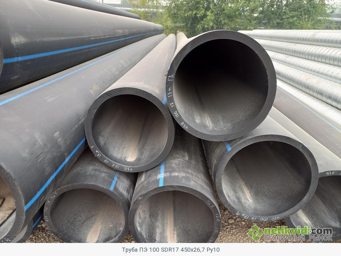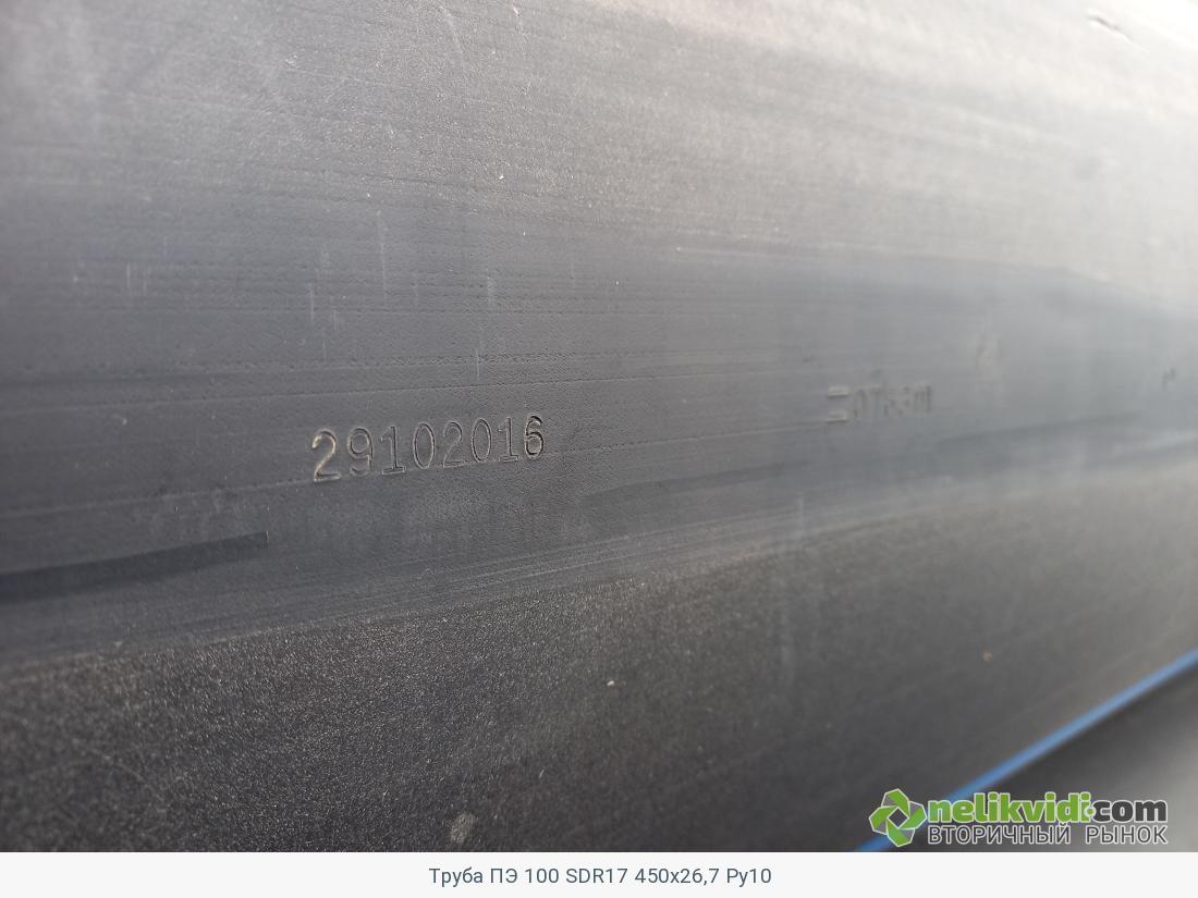 Вид продукции - Труба; Материал - полиэтиленовая ПЭ 100; Размерное отношение SDR - 17; Диаметр наружный_мм - 450; Толщина стенки_мм - 26,7; Давление_МПа - 10; Стандарт - ГОСТ 18599;